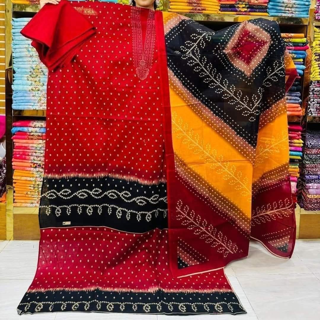 Gonga Cotton Three Piece – Unstitched Cotton Three Piece by kalamkari for Women