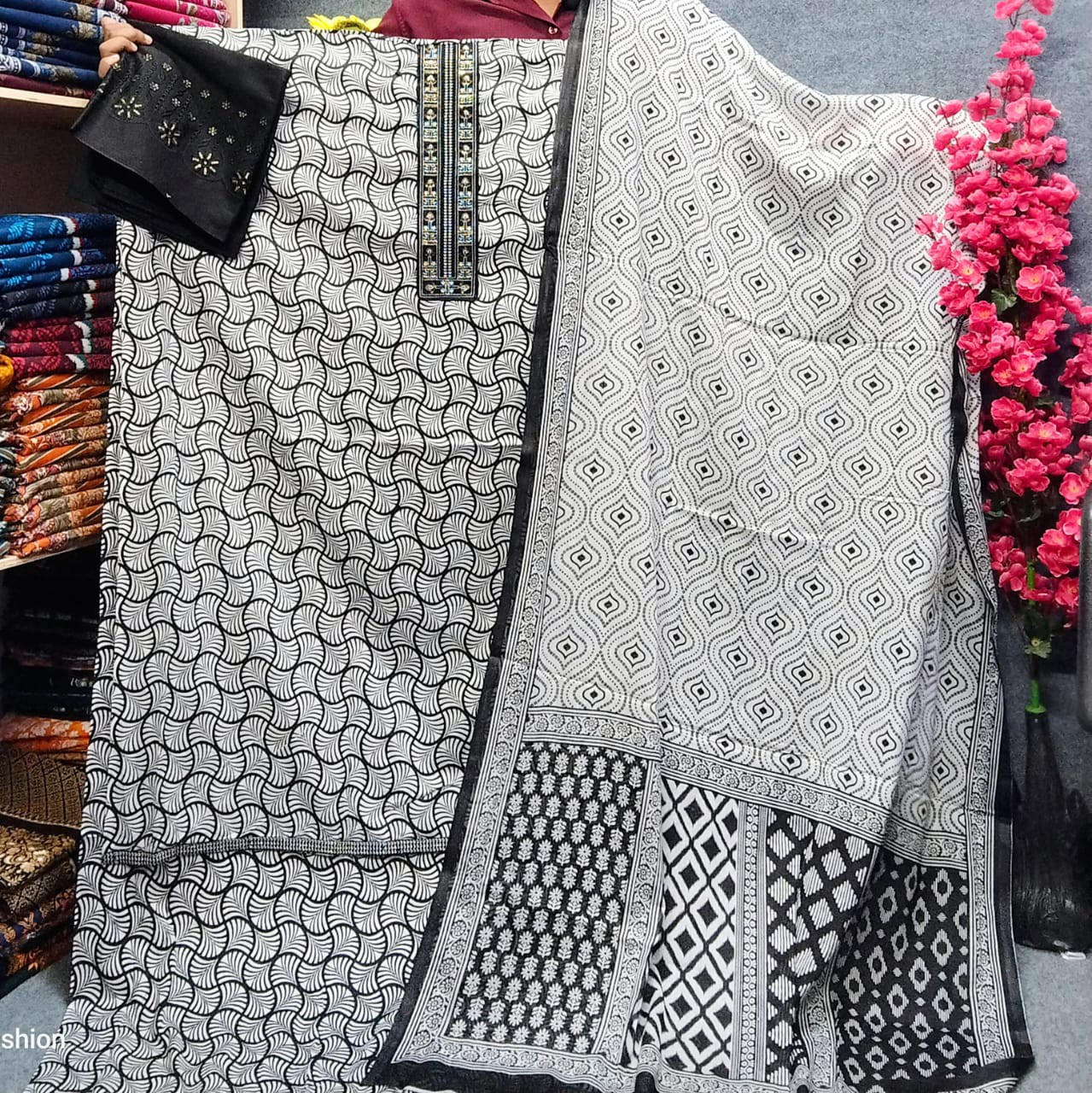 ছেলোয়ার এর মধ্যে চিকেঙ্কারি সিকুয়েন্স এমবড্রারি করা আছে